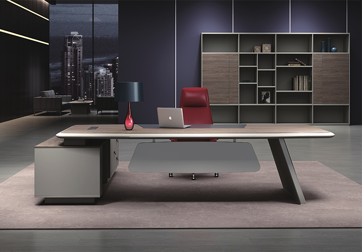 4.桌面加厚至4cm,中纖板基材,四周倒斜角處理,內(nèi)嵌銀絲梨木裝飾;封邊采用五底三面油漆封邊工藝;線槽位鑲嵌卡拉白色巖板,美觀精致紋理清晰;寫字位選用優(yōu)質(zhì)超纖皮革飾面;