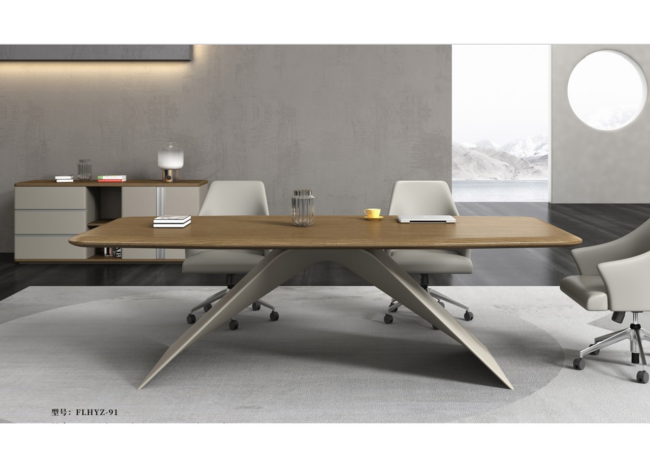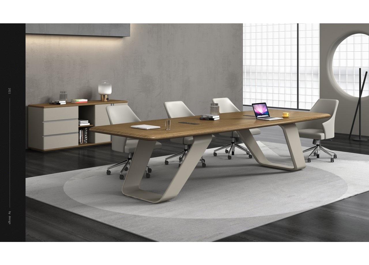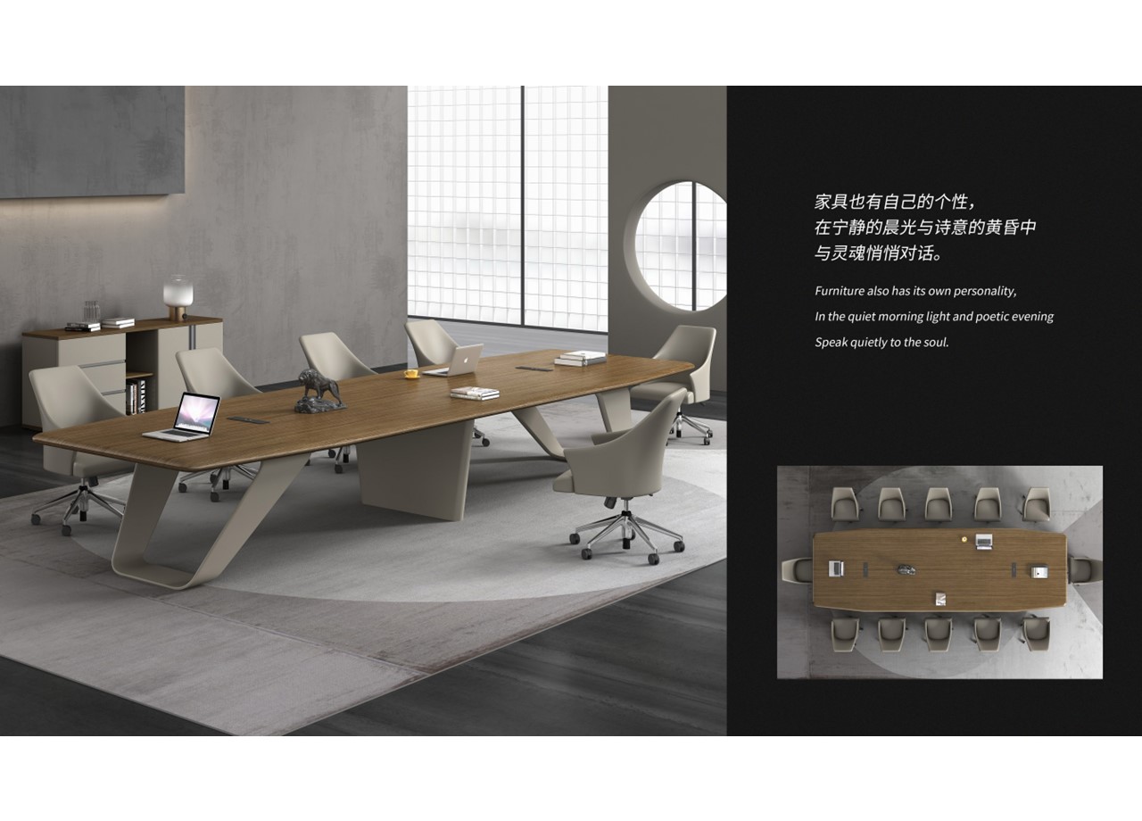 2.桌面中纖板基材,高檔尼絲木皮貼面,雙層貼合設(shè)計(jì),總厚度6cm,四周倒斜角處理;采用五底三面油漆封邊工藝;線槽位鑲嵌拉絲不銹鋼,美觀精致紋理清晰;