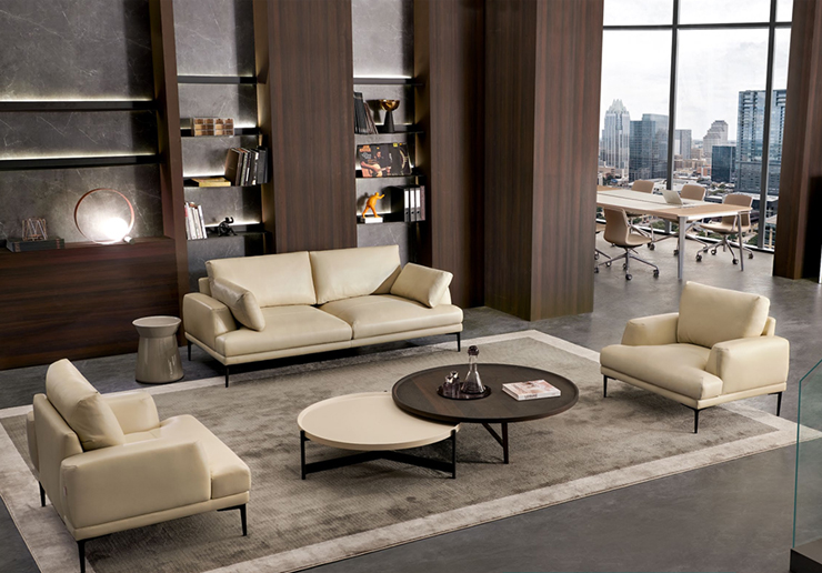 使用進(jìn)口一級(jí)牛皮,抗張強(qiáng)度≥15N/mm2,撕裂強(qiáng)度≥35N/mm2 。皮面平整、柔軟、舒適、透氣性好,防污、防蛀、無退色,無瑕疵,無蝕味、無甲醛及二甲苯等異味,且任何部位無皮癬;內(nèi)部采用優(yōu)質(zhì)高彈性阻燃泡棉底座密度高達(dá)45kg/m3以上,其它部位不小于35Kg/立方米,拉伸強(qiáng)度不小于85Kpa;框架主體為東北硬雜木。實(shí)木龍骨沙發(fā)框架、實(shí)木沙發(fā)腳等所用木材含水率要求≤12%。五金配件均為進(jìn)口名牌,各種配件、連接件安裝嚴(yán)密、平整、端正、牢固,結(jié)合處無崩茬或松動(dòng),無少件、漏釘、透釘現(xiàn)象。