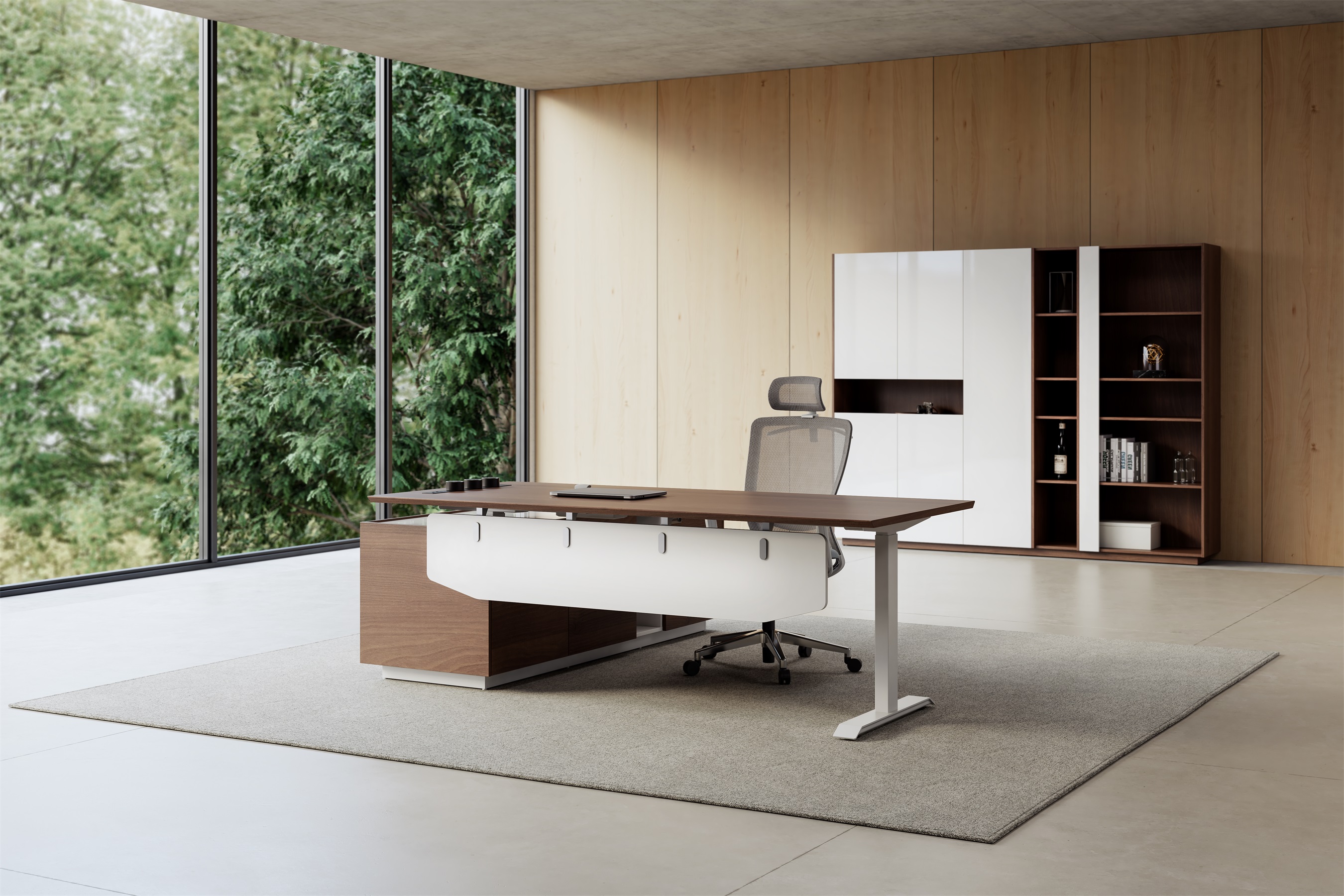 1.基材:采用國際品牌“上思華林”優(yōu)質(zhì)E0級(jí)中纖板、2.噴粉:中纖板經(jīng)過250度高溫殺菌,同時(shí)有效地清除中纖板內(nèi)的甲醛,將粉末通過熱能及靜電噴涂,使粉末均勻覆蓋在表面。噴粉中纖板的板件造型、顏色、表面紋理及表面壓紋雕刻創(chuàng)造無限設(shè)計(jì)空間,在生產(chǎn)過程中不會(huì)產(chǎn)生任何污染,對(duì)人體、空氣、水源及泥土無害。3.鋼架桌腳:采用 “寶鋼”品牌優(yōu)質(zhì)鋼管,鋼管壁厚≥2.0mm。4.五金配件:采用奧運(yùn)會(huì)生活家居五金獨(dú)家供應(yīng)商“冠輝”品牌優(yōu)質(zhì)五金連接件。(標(biāo)配:雙電機(jī)電動(dòng)升降+323翻蓋線蓋+集成線盒)