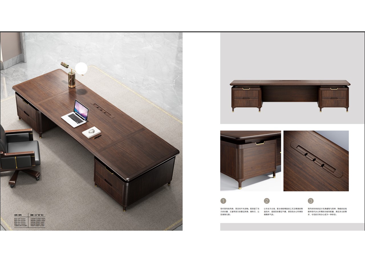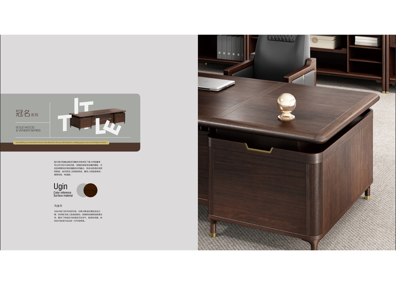 板木意式輕奢總裁系列整體完美體現(xiàn)了意大利輕奢美 學(xué)從羅馬柱中汲取靈感,流暢的曲線將金屬的精致,木 皮的典雅和皮革的細膩的自然融合,將各自的美妙發(fā)揮 到極致,追求視覺上的極致舒適,觸覺上的極度愉悅。 錯落有致,構(gòu)造感。 烏金木始于其木紋的華美。烏黑與黃金紋理的絲絲交 錯,如同斑馬身上流動的斑紋。其擁有的獨特的質(zhì)感光 澤,摒棄了傳統(tǒng)實木家具的沉悶老氣,極具時尚感。如 同實木家具中走出的一位年輕貴族。